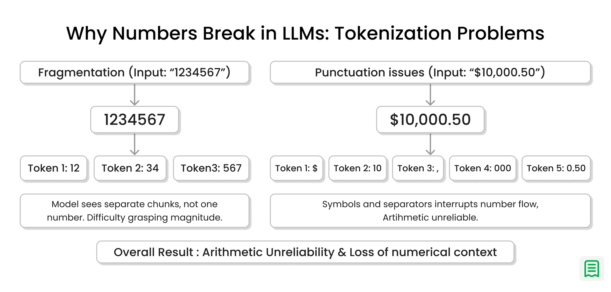 LLMs decide the “next token” by probability, not by symbolic correctness. For math-heavy and rule-heavy domains, that mismatch matters. An answer that sounds like a seasoned analyst wrote it can still be numerically wrong.